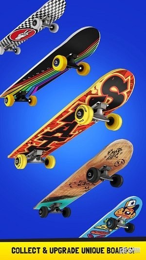 在游戏中比拼的不只是速度而是技术,要让自己能够更灵活的控制滑板,从而能够快速的到达终点,拥有非常欢快的氛围,还拥有着非常多样的滑板表演,你能够使用不同色彩的滑板进行玩耍,也能够让你更好的控制滑板。