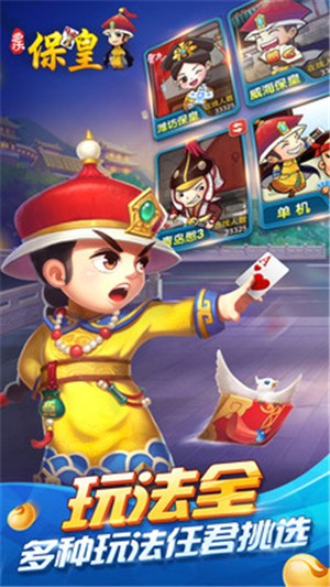 风靡全山东的特色经典游戏—多乐保皇,不仅包含单机版、联网版,而且还囊括了青岛玩法、威海玩法、潍坊玩法,同时还分进贡、非进贡场次。每天数十万玩家在线,免费下载、无需注册、安装后即可游戏,无需担心人手不够,每天数十万玩家在线,分分钟让你开始打保皇。
