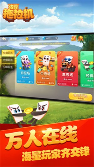 边锋拖拉机是一款多人在线棋牌类手游,游戏中推陈出新的玩法才能俘获玩家的心,游戏保留标准的玩法外,还新增了“千王场”、“万人场”、“娱乐场”,在此都能体验一把尔虞我诈的刺激快感,下一个赌神就是你!