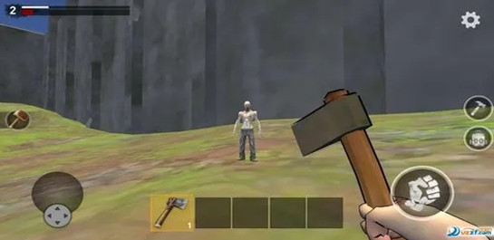进入游戏后,我们出生点附近的生态环境为森林生态。我们进来第一件事就是砍树,挥动你的斧子砍倒一颗大树吧!