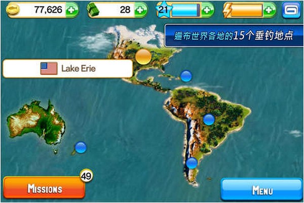 解锁Gameloft Live!上的成就,并将你的成绩展示在游戏专属页面上,力争夺得最佳钓手的头衔。