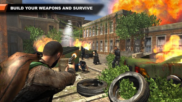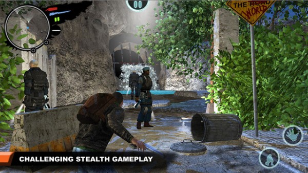 马上我们就开始了第一关,貌似事件的起点是一个破旧的监狱,男猪脚神奇般地逃了出来?然后一路上会有各种教程陪伴,操作设计相当常规,摇杆+按键配合使用,让人物移动、下蹲、或者举枪射击。整个游戏界面我已经不想吐槽什么了,字体、分辨率、再到每个物件和细节的贴图,都十分符合“免费”游戏的风格(开发商大人,我已经说的很委婉了),837 MB 的游戏体积并未体现在画面上,而是给我们准备了一大波的关卡。