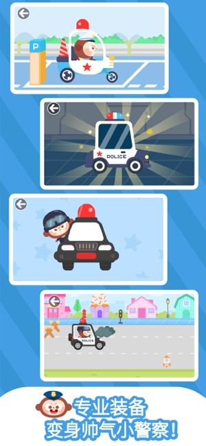 宝宝可以选择扮演不同的警种,可以体验每种警察要背负的责任;