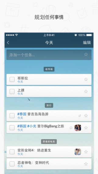 奇妙清单app是一款提醒软件。奇妙清单app可以帮助用户记录点子或想法、想要完成的任务和想去的地方。奇妙清单app无论是计划旅程,还是与好友分享购物清单或者是同事团队之间的工作项目,奇妙清单让您更容易与所有人协作。