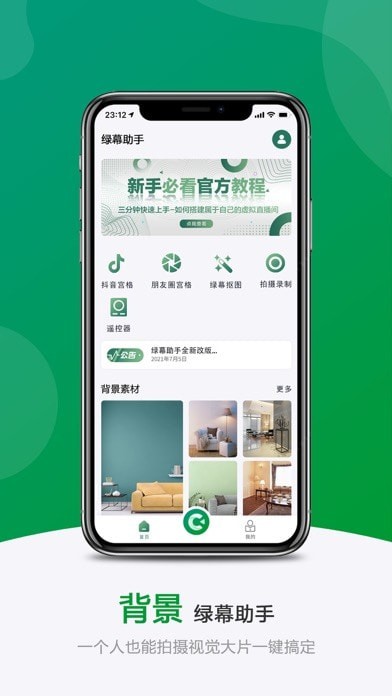 绿幕助手是一款非常实用的手机相机软件,使用时用户家只需在绿幕或绿色背景的摄像头前摆好各种造型或动作,选定自己喜欢的预设视频或图片背景素材场景,然后使用抖音、快手等直播APP中的录屏或推流直播功能即可进行实时虚拟背景直播。