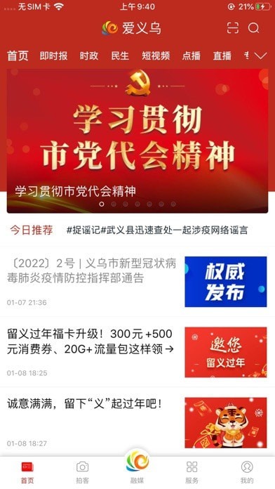 1、在爱义乌应用app的首页,就能翻看自己喜欢的新闻