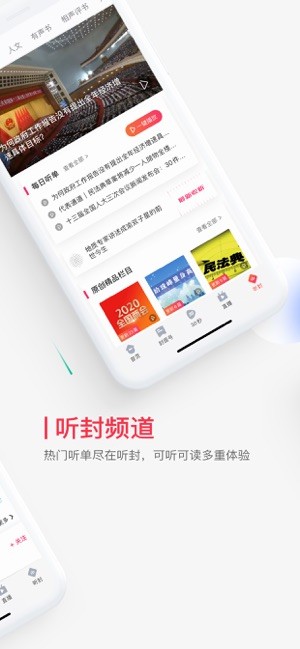 智能聚合24小时重点资讯,形成每日听单,一键收听最新内容。引入喜马拉雅优质音频资源,音频种类更加多元。优化播放体验,支持连续播放,播放阅读两不误。
