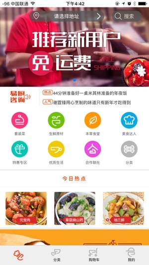 易厨鲜生APP是一款专注于生鲜美食的配送平台,每天都会推荐各种不同的生鲜美食和特色套餐菜,不仅味道鲜美,价格也很亲民,易厨鲜生为您开启一种全新的健康生活方式。