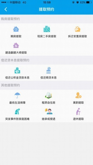 2、进入【提取预约】界面,用户可根据自己的公积金提取需求来选择自己的提取预约申请;