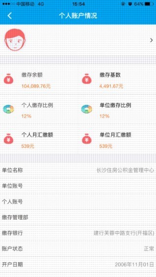 公积金:查余额,月缴,明细,并且自动计算与当前地区的公积金排名。