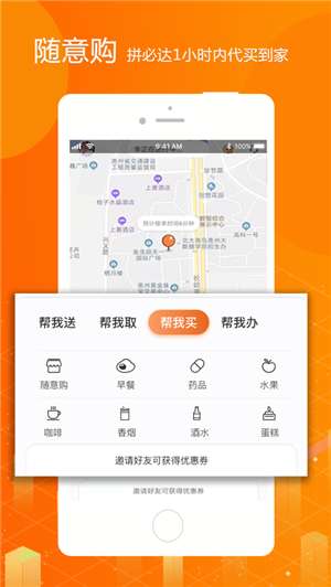 帮我买:零食小吃、药店超市、海鲜河鲜、生活用品、蔬菜水果、网红食品等,全城购买,准时送达。