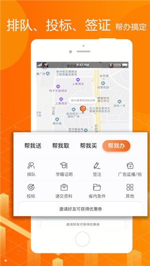 帮我办:医院挂号、餐厅排队、代 购车票、照顾宠物、维修服务等,为客户提供高品质的各种上门服务。