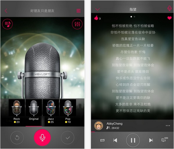 -既然是以个人歌唱比赛为目的,当然需要最为真实的声音,因此我们在录音的时候以及录音完毕之后都不能使用任何的声音调整功能,如果觉得不满意可以重录,之后点击分享即可,需要注意的是,在录制之前你可以根据自己的需求升Key或是降Key。