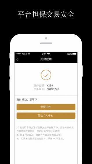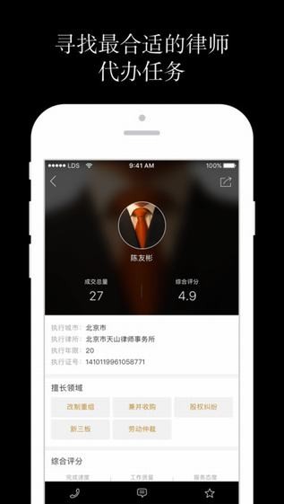 协助:律师发布任务后可自行选择合适的协助律师,合适的才是最好的。协助律师完成任务后,可获得合理的协助费用。