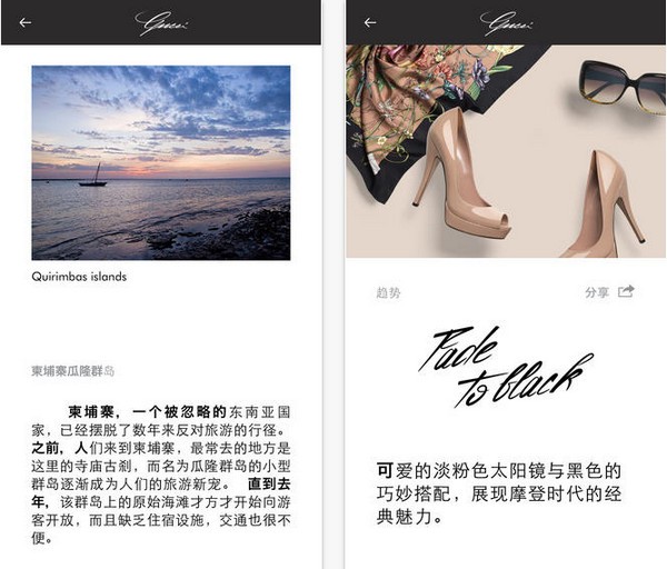 GUCCI杂志官网版是开发商Guccio Gucci SPA为GUCCI打造的手机端杂志,通过GUCCI Style你可以了解到GUCCI的品牌历史,流行时尚趋势已经GUCCI的新品发布。