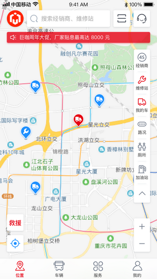 6.可随时随地查看爱车位置,及将我的位置分享给爱车。