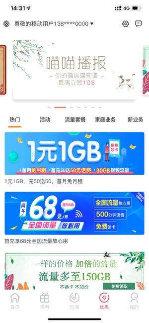 中国移动北京APP V8.4.1版本,服务功能全面升级: