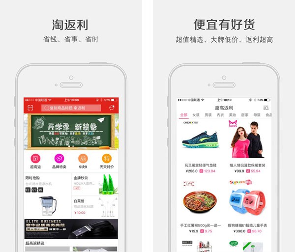 淘返利app淘宝第三方购物平台,精选每日淘宝最优惠的商品,商品由淘宝卖家提供让买家享受超优惠,优质的购物体验,一元秒杀,九块九包邮更能让用户开心抢购!