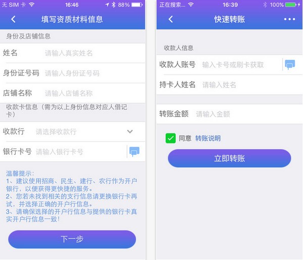 2、优化转账、信用卡还款通道,到账更加迅速;