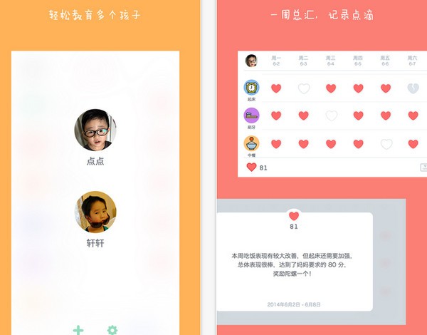 乖乖iPhone版可以设置许多孩子们需要培养或者纠正的行为习惯,然后每天晚上和孩子们去一起总结打分。表现好就就一分,不好则扣一分,平均每周或者每个月总结一次,如果表现不错的话可以适当性的给予表扬和奖励,
