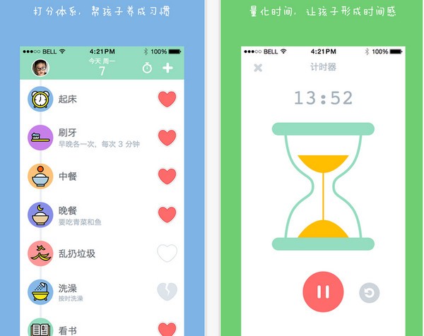 3. 以天和周为单位进行奖罚,比如:第一天没有达到 8 分第二天就不能吃糖,一周达到 70 分可以奖励一个玩具;
