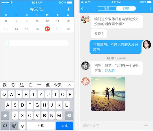 Date日历iPhone是一款智能社交日历,协助你合理安排时间,并能最大化利用碎片时间界面清爽、干净!用起来也很方便,特别是语言输入,和朋友一起分享活动更加方便了,赞!如果你平时聚会活动多,经常要翻记事本去查事情,现在用这个产品每天看下今天有什么事情就好了。