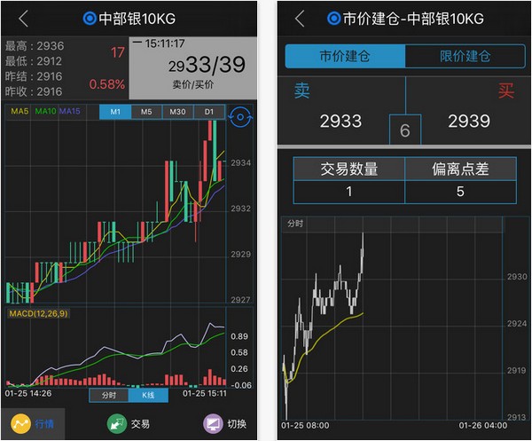用户首次使用中部大宗商品交易中心app时,可以通过填写有效的电子邮件地址注册开通模拟帐号,成功登录系统后,用户即可查看到行情报价、账户的资金信息、持仓单、限价单、平仓单,委托交易功能提供了市价建仓、市价平仓、限价建仓、修改止盈/止损、撤销限价单等丰富多样的交易模式,让用户通过模拟交易随时了解交易商品的最新价格信息,还能通过实际操作提升自身的投资技能。